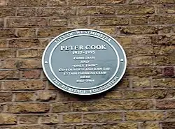 36. ^ a b "Peter Cook Blue Plaque Unveiling". The Heritage Foundation. Archived from the original on 25 February 2010. Retrieved 27 March 2009.