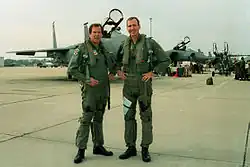 Jennings anchored ABC's coverage of the September 11 attacks for 17 straight hours, an effort described as "Herculean" by television critics.[75] Like other network news anchors, he was widely praised for guiding Americans through the disaster. When the South tower collapsed, Jennings at first did not understand what was happening, saying "We now have a—what do we have?" ABC Correspondent John Miller thought it might be "A new large plume of smoke." Jennings then went to Correspondent on the ground Don Dahler to ask what was happening Dahler replied, "The second building that was hit by the plane has just completely collapsed. The entire building has just collapsed...it folded in on itself and it's not there anymore." Jennings still did not understand asking "The whole side has collapsed?" Dahler repeated "The whole building has collapsed". Jennings asked once more to confirm, and Dahler repeated "The building has collapsed." Jennings then said "We are talking about massive casualties here at the moment and we have—that is extraordinary." When the North Tower collapsed Jennings simply and quietly said "Oh my God." after a pause he said "It's hard to put into words, and perhaps one doesn't need to. Both Trade Towers, where thousands of people work, on this day, Tuesday, have now been attacked and destroyed with thousands of people either in them or in the immediate area adjacent to them."[76][77] At one point, Jennings broke his composure after receiving phone calls from his children. "We do not very often make recommendations for people's behavior from this chair," he said, "but...if you're a parent, you've got a kid in some other part of the country, call them up. Exchange observations."[78][79]