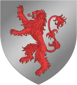 Peter received his sword (Rhindon) and shield from Father Christmas after meeting him on the journey to find Aslan, and is later knighted "Sir Peter Wolf's-Bane"[5] by Aslan after he kills Maugrim the wolf, chief of the White Witch's secret police, who was trying to kill Susan and Lucy. In the American editions of the books on which the 1979 animated film was based, Lewis changed the chief wolf's name to Fenris-Ulf, after a figure from Norse mythology. In those versions, Peter is given the epithet "Fenris-bane".