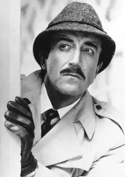 After his father's death in October 1962, Sellers decided to leave England and was approached by director Blake Edwards, who offered him the role of Inspector Clouseau in The Pink Panther after Peter Ustinov had backed out of the film.[124] Edwards later recalled his feelings as "desperately unhappy and ready to kill, but as fate would have it, I got Mr. Sellers instead of Mr. Ustinov—thank God!"[125] Sellers accepted a fee of £90,000 (£920,000 in 2024 pounds)[126] for five weeks' work on location in Rome and Cortina.[127] The film starred David Niven in the principal role, with two other actors—Capucine and Claudia Cardinale—having more prominent roles than Sellers.[128] However, Sellers's performance is regarded as being on par with that of Charlie Chaplin and Buster Keaton, according to biographer Peter Evans.[128] Although the Clouseau character was in the script, Sellers created the personality, devising the costume, accent, make-up, moustache and trench coat.[123]