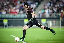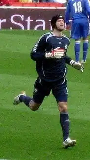 In France, Čech starred in an under-performing team, and was the subject of a then club-record transfer for a goalkeeper when he moved to Premier League side Chelsea for a fee of £7 million (€9.8 million) in 2004. In his eleven-year spell at Chelsea, Čech made 494 appearances in all competitions, making him the club's seventh most capped player of all time.[20] He also helped the club win four Premier League titles, four FA Cups, three League Cups, one UEFA Champions League title, and one UEFA Europa League title. Čech also holds Chelsea's all-time record for clean sheets, with 228.[21] Čech departed Chelsea in 2015 to join city rivals Arsenal for a fee of £10 million, where he won another FA Cup before retiring in 2019.