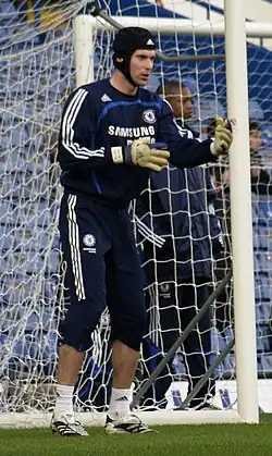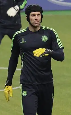 Petr Čech[4] (Czech pronunciation: [pɛtr̩ ˈtʃɛx] ; born 20 May 1982) is a Czech former professional football goalkeeper and current ice hockey goaltender who plays for the Haringey Huskies of the NIHL South Division 2. He has been described as one of the greatest goalkeepers of all time,[nb 1] and, by some, as the greatest goalkeeper, alongside Peter Schmeichel, in Premier League history.[nb 2]