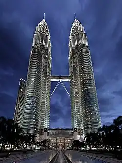In March 1996, the company began to undertaking a Petrochemical Master Plan study and helped to formulate a Gas Master Plan for the Indochinese country.[120] Subsequently, it partnered with Sinopec Zhuhai Yuehua Petrochemical Company, Nissho Iwai Corporation, Guangdong Province Petroleum Enterprise Group and Yangjiang Company to envision the construction of a liquefied petroleum gas bottling, storage and distribution plant in Yangjiang City, Guangdong, China.[121][122] In May the same year, Petronas entered the aromatics market by way of a joint venture with Japanese conglomerate, Mitsubishi Corporation that created Aromatics Malaysia.[123][124] As part of its globalization plan, the company purchased 30% stake of the former sub-Saharan branch of Mobil Oil in June, rebranded as Engen Petroleum.[125][126][127] While the Asian economy as a whole suffered from an economic crisis during 1997 and 1998, Malaysia was quick to bounce back due to successful government reforms. From its new headquarters in the Petronas Twin Towers, the state-owned company continued its development in the oil and gas industry.[128]