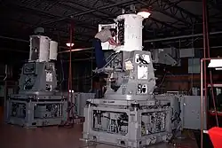 The Phalanx CIWS (SEE-wiz) is an automated gun-based close-in weapon system to defend military watercraft automatically against incoming threats such as aircraft, missiles, and small boats. It was designed and manufactured by the General Dynamics Corporation, Pomona Division,[3] later a part of Raytheon. Consisting of a radar-guided 20 mm (0.8 in) Vulcan cannon mounted on a swiveling base, the Phalanx has been used by the United States Navy and the naval forces of 15 other countries. The U.S. Navy deploys it on every class of surface combat ship, except the Zumwalt-class destroyer and San Antonio-class amphibious transport dock.[5] Other users include the British Royal Navy, the Royal Australian Navy, the Royal New Zealand Navy, the Royal Canadian Navy, and the U.S. Coast Guard.