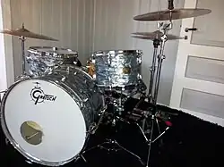 Collins was given a toy drum kit for Christmas at the age of five, and later, his two uncles made him a makeshift set with triangles and tambourines that fitted into a suitcase.[21] These were followed by more complete sets bought by June and Greville as Collins grew older.[22] Collins practised by playing along to music on the television and radio.[23] During a family holiday at Butlin's, a seven-year-old Collins entered a talent contest, singing "The Ballad of Davy Crockett"; he stopped the orchestra halfway through to tell them they were in the wrong key.[17][24] The Beatles were a major early influence on him, including their drummer Ringo Starr.[25][26] Collins followed the lesser-known London band the Action, whose drummer, Roger Powell, he would copy and whose work introduced him to the soul music of Motown and Stax Records.[27] Collins was also influenced by the jazz and big band drummer Buddy Rich,[28] whose opinion on the importance of the hi-hat prompted the former to stop using a second bass drum and start using the hi-hat.[29]
