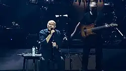 Philip David Charles Collins (born 30 January 1951) is an English singer, drummer, songwriter, record producer and actor. He was the drummer and later became the lead singer of the rock band Genesis and had a successful solo career, achieving three UK number-one singles and seven US number-one singles as a solo artist. In total, his work with Genesis, other artists and solo resulted in more US top-40 singles than any other artist throughout the 1980s.[5] His most successful singles from the period include "In the Air Tonight", "Against All Odds (Take a Look at Me Now)", "One More Night", "Sussudio", "Another Day in Paradise", "Two Hearts" and "I Wish It Would Rain Down".