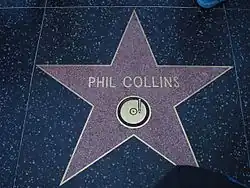 In June 1999, Collins was awarded a star on the Hollywood Walk of Fame.[136] In 2000, he became partially deaf in one ear due to a viral infection.[137] In June 2002, Collins accepted an invitation to drum for the house band at the Party at the Palace concert held on the grounds of Buckingham Palace, an event which celebrated Queen Elizabeth II's Golden Jubilee.[138] In 2002, he received the Disney Legend award.[139]
