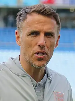 After earning his UEFA B Coaching Licence, Neville began his coaching career in 2012, filling in for Stuart Pearce with the England under-21s. He then worked as a coach at Manchester United, and as assistant manager to his brother Gary at Valencia in La Liga. On 23 January 2018, Neville was appointed head coach of the England women's team.[4] He led the "Lionesses" to fourth place at the 2019 FIFA Women's World Cup.