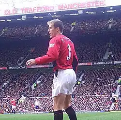While at Manchester United, he was booked many times, such as in the 2002–03 season when he received 13 yellow cards, despite only starting 35 competitive games.[12] In September 2003, Neville received a warning from The Football Association regarding his future conduct for his behaviour after Manchester United's game against rival side Arsenal.[13]