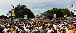 The Live 8 concert in 2005 with Benjamin Franklin Parkway (in foreground) and the museum (in background)