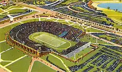 From 1936 to 1939, the Eagles played at Municipal Stadium in South Philadelphia. In 1940, Bell balked at a 66% rent increase plus 10% of the gate receipts proposed by the City of Philadelphia for the use of Municipal Stadium and signed a lease for Shibe Park, which was renamed Connie Mack Stadium in 1954. At Connie Mack Stadium, the Eagles were also able to play night games, since lights were installed at the stadium the year before.[17] In the 1941 season, the Eagles played their home opener at Municipal Stadium, and then moved to Shibe Park.[18][19][20] To accommodate football at Shibe Park during the winter, management erected stands in right field, parallel to 20th Street. Some 20 feet high, these east stands included 22 rows of seats. The goalposts stood along the first base line and in left field. The uncovered east stands enlarged the park's capacity to over 39,000, but the Eagles rarely drew more than 25,000 to 30,000.[21] The Eagles finished the 1937 season 2–8–1 and continued to struggle over the next three seasons.[22]