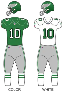 - ^ Hecken, Phil (February 4, 2018). "Supe's On Part II: Uni History of the Philadelphia Eagles". UniWatch. Retrieved February 7, 2023.