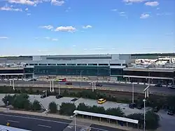 In 2002 construction on the controversial new entrance ramps went forward. The new ramps eliminated the traffic signal and stop intersections previously encountered by northbound I-95 motorists who had to use Route 291 to the airport. The project consisted of six new bridges, more than 4,300 linear feet of retaining walls, and 7.7 lane miles of new pavement. The project also included new highway lighting, overhead sign structures, landscaping and the paving of Bartram Avenue. Also under the project, PennDOT resurfaced I-95 between Route 420 and Island Avenue and built a truck enforcement and park-and-ride facility.[20] In 2003 Terminal A-West opened, with a 1,500-space parking garage. Construction of the terminal was funded by airport revenue bonds sold by the Philadelphia Authority for Industrial Development.[21]