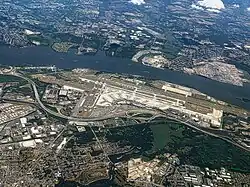 Aerial view of Philadelphia International Airport in June 2024, looking southeast