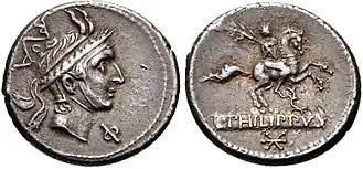 - ^ Michael Crawford (1974) Roman Republican Coinage, Cambridge University Press, pp. 307, 308.
