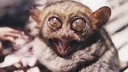 The Philippine tarsier (Carlito syrichta) is a species of tarsier endemic to the Philippines. It is found in the southeastern part of the archipelago, particularly on the islands of Bohol, Samar and Leyte. It is a member of the approximately 45-million-year-old family Tarsiidae, whose name is derived from its elongated "tarsus" or ankle bone. Formerly a member of the genus Tarsius, it has since been listed as the only member of the genus Carlito, a new genus named after the conservationist Carlito Pizarras.