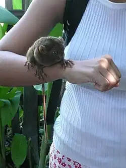 Tarsiers in the Philippines have been sought out as pets or sold for trade, despite their low survival rate outside of their natural habitat, where they feed on live insects.[33] Private displays by people in Loboc, Bohol[23][34] tend to diminish the lives of tarsiers.[35] Further, some feel that the display of captive tarsiers might encourage tourists to acquire them illegally as pets.[34]