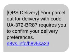 A typical style of SMS phishing message