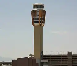 The airport's 326-foot-tall (99 m) air traffic control tower began operations on January 14, 2007. It stands just east of the Terminal 3 parking garage and also houses the Phoenix TRACON. This is Sky Harbor's third control tower and is among the tallest control towers in North America.[46][47]