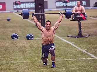 Cardiorespiratory fitness can be measured using VO2 max, a measure of the amount of oxygen the body can uptake and utilize.[18][19] Aerobic exercise, which improves cardiorespiratory fitness and increase stamina, involves movement that increases the heart rate to improve the body's oxygen consumption. This form of exercise is an important part of all training regiments, whether for professional athletes or for the everyday person.[20]