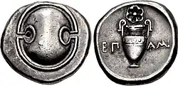 Pi (/ˈpaɪ/ ⓘ; Ancient Greek /piː/ or /peî/, uppercase Π, lowercase π, cursive ϖ; Greek: πι) is the sixteenth letter of the Greek alphabet, representing the voiceless bilabial plosive IPA: [p]. In the system of Greek numerals it has a value of 80. It was derived from the Phoenician letter Pe (