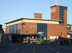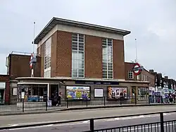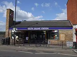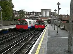 In 1929, quadrupling was to extend to Northfields for express trains to terminate there. This work was completed on 18 December 1932. Overall works for the extension began in 1931, approximately a year after permission was granted and funded under the Development (Loan Guarantees and Grants) Act 1929 (20 & 21 Geo. 5. c. 7). The Studland Road Junction area was partially rebuilt, with some of the old viaducts retained to date. The junctions diverging to Richmond were reconfigured at Turnham Green. Reversing facilities were initially designated at the latter, but these were not built.[80] Trial runs of Piccadilly line trains began on 27 June 1932. On 4 July 1932, services were extended to South Harrow, which replaced DR services. Northfields services were introduced on 9 January 1933, and on 13 March, were extended to Hounslow West. On 1 July 1933, the London Passenger Transport Board (LPTB) was formed, which included the Met, the DR and LER.[26] The board decided that there was sufficient demand to run through trains to Uxbridge due to rapidly developing suburbs along the line. The extension of Piccadilly line trains to Uxbridge began on 23 October 1933, but with many trains still reversing at South Harrow. By then, most Piccadilly line trains continued beyond Hammersmith, and District line trains to Hounslow were reduced to off-peak shuttles to Acton Town. An enhanced off-peak Piccadilly line service was introduced on 29 April 1935, cutting off-peak District line services down to the Acton Town–South Acton shuttle.[81] South Harrow short trips proved to be an inconvenience. The solution was to move reversing facilities to Rayners Lane. A new reversing siding was built there in 1935, which allowed some peak hour trains to terminate beginning in May 1936. Regular reversals were fully implemented in October 1943.[82] Peak-hour District line trains to Hounslow were fully withdrawn on 9 October 1964.[83]