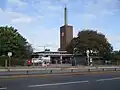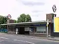 Tunnel rings, cabling and concrete were produced in Northern England, while unemployed industrial workers there helped in the construction of the extension. Construction of the extension started quickly, with the boring of the twin tube tunnels between Arnos Grove and Finsbury Park proceeding at the rate of a mile per month. Twenty-two tunnelling shields were used for the tunnels,[53] and tunnel diameters were slightly larger than the old section, at 12 ft (3.7 m). Sharp curves were also avoided to promote higher average speeds on the extension. Platforms 400 ft (120 m) long were originally planned for each station to fit 8-car trains, but were cut short to 385 ft (117 m) when built. Some stations were also built with wider platform tunnels to cater to expected high patronage. To connect with buses and trams, interchange stations were provided with exits which led passengers directly to the bus terminal or tram stop from the subsurface ticket hall. The exits were purposed to improve connections which avoided chaotic passenger flow such as at Finsbury Park. Wood Green was an exception due to engineering difficulties, with the ticket hall at street level instead. Ventilation shafts were provided at Finsbury Park Tennis Courts, Colina Road and Nightingale Road, supplementing the existing fans within the stations. Provisions for future branch lines to Enfield and Tottenham were made at Wood Green and Manor House respectively, both to have reversing sidings. This had since changed, with only a reversing siding built at Wood Green and no provision for the branch line. Arnos Grove was built to have four platforms facing three tracks for trains to reverse regularly, with seven stabling sidings instead of one reversing siding and two platforms.[54][55][56]