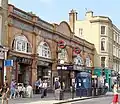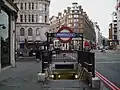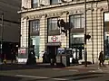 In conjunction with the new extensions, several stations were considered for closure to increase overall line speeds. Down Street closed on 21 May 1932, Brompton Road on 29 July 1934, and York Road on 17 September 1932.[57][84] All three stations were lightly used. Down Street and Brompton Road were replaced, respectively, by relocated entrances at Hyde Park Corner and Knightsbridge. Knightsbridge's new below-ground ticket hall required stairwells from the entrance, one of which took over part of the Barclays Bank branch there. Both of the latter two stations retained their existing platforms, but the access from the surface was reconstructed with their entrances closer to the closed stations. These new entrances were provided with escalators, which replaced the lifts, improving passenger circulation. The Aldwych branch was deemed unprofitable. In 1929, an extension to Waterloo was approved, costed at £750,000, but no progress was made on its construction. Dover Street (now Green Park), Leicester Square and Holborn stations received new sets of escalators, the latter having four in a single shaft. These were completed in the early 1930s.[85][86][87] As part of the 1935–40 New Works Programme, Earl's Court was largely reconstructed at street level. At King's Cross St Pancras, the Piccadilly and Northern lines were finally connected via new escalators, albeit with construction delayed due to financial difficulties.[88][note 13] As a result, Russell Square station retained its lifts.[90]