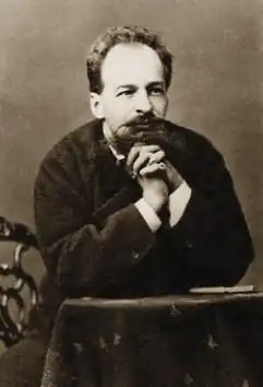The composition is based on pictures by the artist, architect, and designer Viktor Hartmann. It was probably in 1868 that Mussorgsky first met Hartmann, not long after the latter's return to Russia from abroad. Both men were devoted to the cause of an intrinsically Russian art and quickly became friends. They likely met in the home of the influential critic Vladimir Stasov, who followed both of their careers with interest. According to Stasov's testimony, in 1868, Hartmann gave Mussorgsky two of the pictures that later formed the basis of Pictures at an Exhibition.[1] In 1870, Mussorgsky dedicated the second song ("In the Corner") of the cycle The Nursery to Hartmann. Stasov remarked that Hartmann loved Mussorgsky's compositions, and particularly liked the "Scene by the Fountain" in his opera Boris Godunov. Mussorgsky had abandoned the scene in his original 1869 version, but at the requests of Stasov and Hartmann, he reworked it for Act 3 in his revision of 1872.[2]