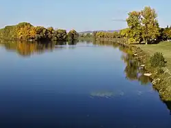 Most of the town is located on the right bank of the river. South of the town is the Sĺňava water reservoir created by a dam on the Váh river. The artificial canal Biskupický kanál and the main river branch join in the town. Another short branch of the river (Obtokové rameno) creates the Spa Island.