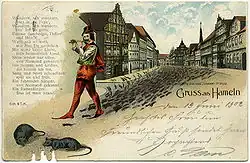Postcard "Gruss aus Hameln" featuring the Pied Piper of Hamelin, 1902