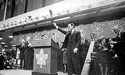 Young Trudeau opposed conscription for overseas service,[20] and in 1942 he campaigned for the anti-conscription candidate Jean Drapeau (later the mayor of Montreal) in Outremont.[21] Trudeau described a speech he heard in Montreal by Ernest Lapointe,[22] minister of justice and Prime Minister William Lyon Mackenzie King's Quebec lieutenant. Lapointe had been a Liberal MP during the 1917 Conscription Crisis, in which the Canadian government had deployed up to 1,200 soldiers to suppress the anti-conscription Easter Riots in Quebec City in March and April 1918. In a final and bloody conflict, armed rioters fired on the troops, and the soldiers returned fire. At least five men were killed by gunfire and there were over 150 casualties and $300,000 in damage.[23]: 504 [24]: 60  In 1939, it was Lapointe who helped draft the Liberals' policy against conscription for service overseas. Lapointe was aware that a new conscription crisis would destroy the national unity that Mackenzie King had been trying to build since the end of the First World War.[25] Trudeau believed Lapointe had lied and broken his promise. His criticisms of King's wartime policies, such as "suspension of habeas corpus", the "farce of bilingualism and French-Canadian advancement in the army," and the "forced 'voluntary' enrolment", were scathing.[26]