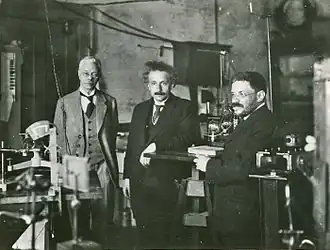 After passing the qualification exams in 1885, Zeeman entered Leiden University to study physics under Kamerlingh Onnes and Hendrik Lorentz. In 1890, he became Lorentz's assistant, which allowed him to participate in a research programme on the Kerr effect. In 1893, he submitted his doctoral thesis on the Kerr effect,[8] the reflection of polarized light on a magnetized surface. After receiving his Ph.D., he went for half a year to Friedrich Kohlrausch's institute at the University of Strassburg. In 1895, he returned to Leiden to become a Privatdozent in mathematics and physics.[9][10][11][12]