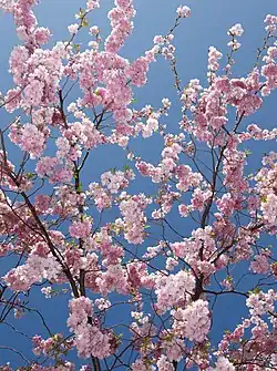 A Japanese cherry tree (Prunus serrulata) in bloom. -