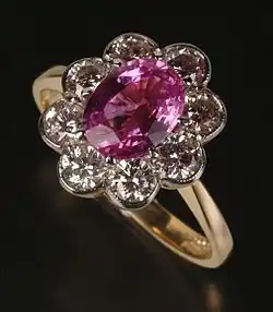 Pink was particularly championed by Madame de Pompadour (1721–1764), the mistress of King Louis XV of France, who wore combinations of pale blue and pink, and had a particular tint of pink made for her by the Sevres porcelain factory, created by adding nuances of blue, black and yellow.[24]