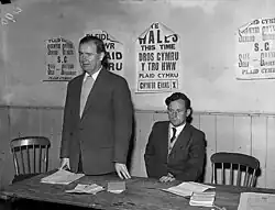 However, in 1966, less than four months after coming in third in the constituency of Carmarthen, Gwynfor Evans captured the seat from Labour at a by-election. This was followed by two further by-elections in Rhondda West in 1967 and Caerphilly in 1968 in which the party achieved massive swings of 30% and 40% respectively, coming within a whisker of victory. The results were caused partly by an anti-Labour backlash. Expectations in coal mining communities that the Wilson government would halt the long-term decline in their industry had been dashed by a significant downward revision of coal production estimates.[71] However, particularly in Carmarthen, Plaid also successfully depicted Labour's policies as a threat to the viability of small Welsh communities.[72]