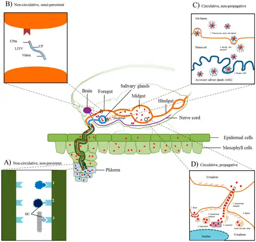 - ^ Gray, Stewart M.; Banerjee, Nanditta (March 1999). "Mechanisms of Arthropod Transmission of Plant and Animal Viruses". Microbiology and Molecular Biology Reviews. 63 (1): 128–148. doi:10.1128/MMBR.63.1.128-148.1999. PMC 98959. PMID 10066833.