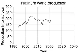- ^ Loferski, P. J. (October 2011). "2010 Minerals Yearbook; Platinum-group metals" (PDF). USGS Mineral Resources Program. Archived (PDF) from the original on 8 July 2012. Retrieved 17 July 2012.