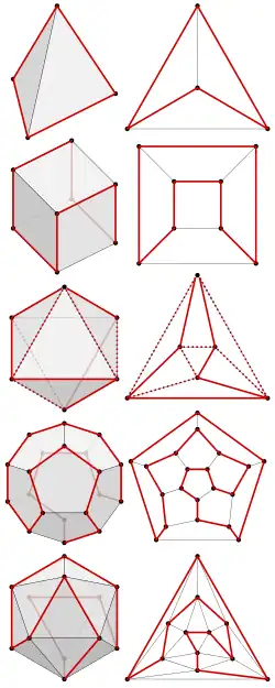 | Figure | Tetrahedron | Octahedron | Cube | Icosahedron | Dodecahedron | |||