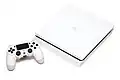 PlayStation 4 Slim (officially marketed simply as PlayStation 4 or PS4) was unveiled on September 7, 2016. It is a revision of the original PS4 hardware with a streamlined form factor. The new casing is 40% smaller and carries a rounded body with a matte finish on the top of the console rather than a two-tone finish. The two USB ports on the front have a larger gap between them, and the optical audio port was also removed.[168] It ships with a minor update to the DualShock 4 controller, with the light bar visible through the top of the touchpad and dark matte grey coloured exterior instead of a partially shiny black. The PS4 Slim was released on September 15, 2016, with a 500 GB model at the same price point as the original PS4 model.[169] Its model number is CUH-2000.[170]
