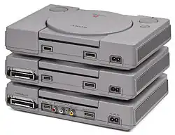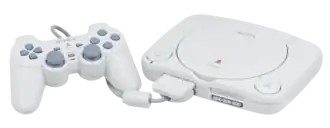 ![]() ![]() Top: The initial PlayStation model (1994) with original controller and memory card Bottom: The redesigned PS one (2000) with DualShock controller and memory card | |
