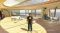 Each user had a personal space which they could modify and change suitably. The initial basic apartment, the Harbour Studio, was free and offered users limited options for customization and personalization. Users could invite any other Home user (even cross-region, unless space was region locked) to their personal space.[63] Some personal spaces, such as the PlayStation Home Mansion, had a built-in TV that played content from PlayStation (such as PlayStation.Blog). Loot Interactive's personal spaces had a variety of content that could be played on their Entertainment on Demand (EOD) screens.[39][64] Users could also place their own digital photographs in picture frames to display on the walls of their apartment.[65] While the Harbour Studio and basic furniture was provided to all users free of charge, premium personal spaces and furniture could be bought from stores. Other ways to obtain furniture, decorative ornaments, or even entire personal spaces included winning mini-games in Home and from playing certain PS3 games that supported Home rewards.