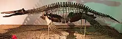 In 2006, a combined team of American and Argentinian investigators (the latter from the Argentinian Antarctic Institute and the La Plata Museum) found the skeleton of a juvenile plesiosaur measuring 1.5 metres (4 ft 11 in) in length on Vega Island in Antarctica.[44] The fossil is currently on display at the geological museum of South Dakota School of Mines and Technology.[45]