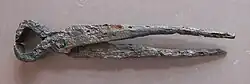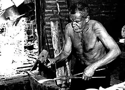 As pliers in the general sense are an ancient and simple invention, no single inventor can be credited. Early metal working processes from several millennia BCE would have required plier-like devices to handle hot materials in the process of smithing or casting. Development from wooden to bronze pliers would have probably happened sometime prior to 3000 BCE.[3] Among the oldest illustrations of pliers are those showing the Greek god Hephaestus in his forge.[4] The number of different designs of pliers grew with the invention of the different objects which they were used to handle: horseshoes, fasteners, wire, pipes, electrical, and electronic components.
