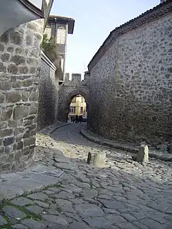 In 1364 the Ottoman Turks under Lala Shahin Pasha seized Plovdiv.[65][66] According to other data, Plovdiv was not an Ottoman possession until the Battle of Maritsa in 1371, after which, the citizens and the Bulgarian army fled leaving the city without resistance. Refugees settled in Stanimaka. During the Ottoman Interregnum in 1410, Musa Çelebi conquered the city killing and displacing inhabitants.[67] The city was the centre of the Rumelia Eyalet from 1364 until 1443, when it was replaced by Sofia as the capital of Rumelia. Plovdiv served as a sanjak centre within Rumelia between 1443 and 1593, the sanjak centre in Silistra Eyalet between 1593 and 1826, the sanjak centre in Eyalet of Adrianople between 1826 and 1867, and the sanjak centre of Edirne Vilayet between 1867 and 1878. During that period, Plovdiv was one of the major economic centers in the Balkans, along with Istanbul (Constantinople), Edirne, Thessaloniki, and Sofia. The richer citizens constructed beautiful houses, many of which can still be seen in the architectural reserve of Old Plovdiv. From the early 15th century till the end of 17th century the city was predominantly inhabited by Muslims.[68]