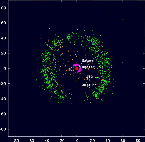 - ^ Gomes R. S.; Gallardo T.; Fernández J. A.; Brunini A. (2005). "On the origin of the High-Perihelion Scattered Disk: the role of the Kozai mechanism and mean motion resonances". Celestial Mechanics and Dynamical Astronomy. 91 (1–2): 109–129. Bibcode:2005CeMDA..91..109G. doi:10.1007/s10569-004-4623-y. hdl:11336/38379. S2CID 18066500.