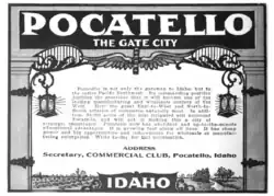 Advertisement of Pocatello for homesteaders in the Sunset Travel Bureau of Information, April 1910.