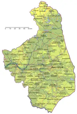 Podlaskie Voivodeship (Polish: województwo podlaskie [vɔjɛˈvut͡stfɔ pɔˈdlaskʲɛ] ⓘ) is a voivodeship in northeastern Poland. The name of the voivodeship refers to the historical region of Podlachia (in Polish, Podlasie), and significant part of its territory corresponds to that region.[3] The capital and largest city is Białystok.