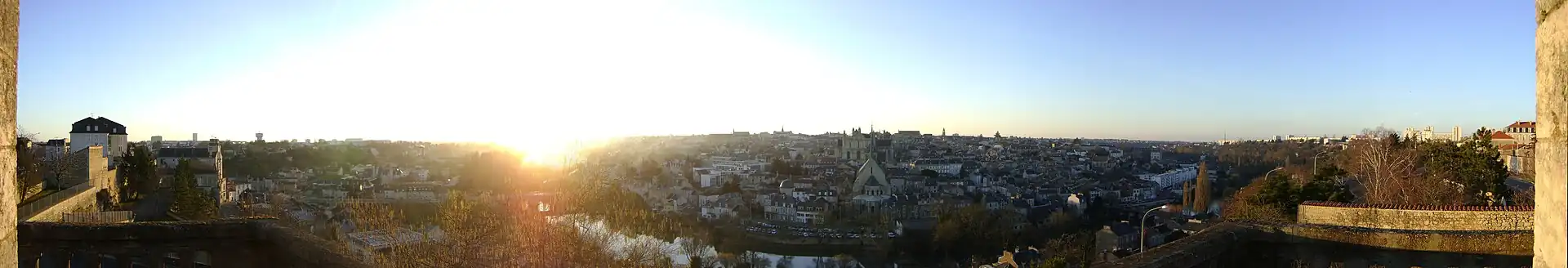 Historic centre of Poitiers with Church of Saint-Radegund, Cathedral of Saint-Pierre and the Palace of Poitiers in the background