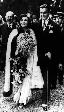 Negri soon married again, to the Georgian self-styled "Prince" Serge Mdivani. This action caused public opinion in the United States to sour against her because it happened so quickly after Rudolph Valentino's death. Negri and Mdivani were married on 14 May 1927 (less than nine months after Valentino's death); shortly after she became pregnant, and Negri, who always wanted a child, started taking better care of her health and even considered retiring from movies in order to be a housewife and mother. However, she reportedly suffered a miscarriage.[46] She grieved the loss of her child for the rest of her life;[46] she and Mdivani divorced on 2 April 1931.[62]